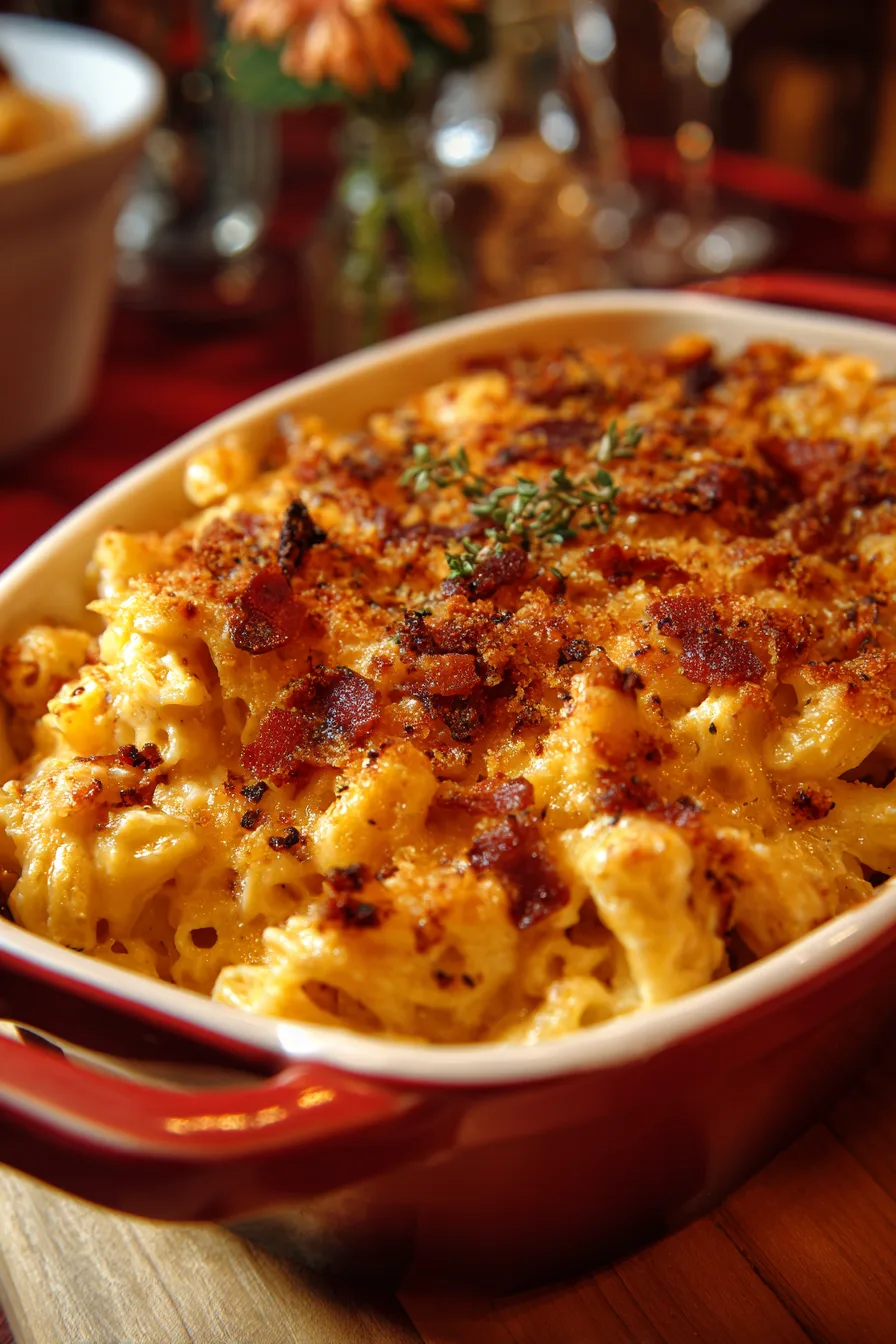 Elevate your Bacon Mac and Cheese with strategic presentations that enhance both visual appeal and flavor complexity. Serve in individual cast-iron skillets topped with fresh herbs for restaurant-style elegance, or create a stunning side dish alongside barbecued meats and crisp coleslaw.