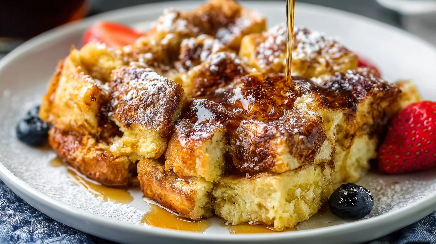 Elevate your Baked French Toast Casserole with complementary toppings that balance its rich, custardy texture. Fresh berry compote adds bright acidity, while a drizzle of warm maple syrup enhances the comfort factor. Consider serving alongside turkey sausage or Canadian bacon for added protein.