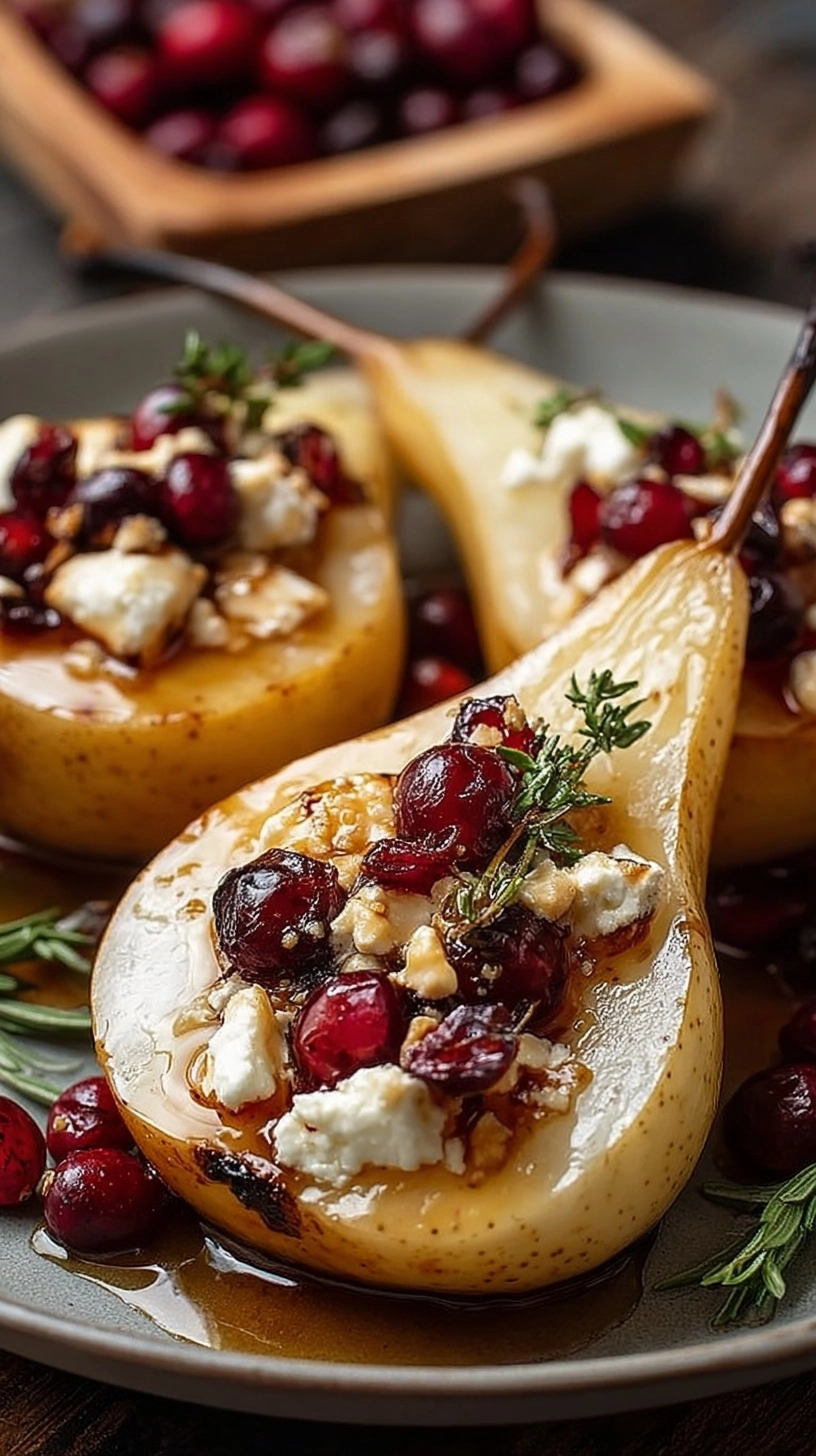 Transform these Baked Pears with Goat Cheese, Honey, and Cranberries into the perfect finale for any occasion: