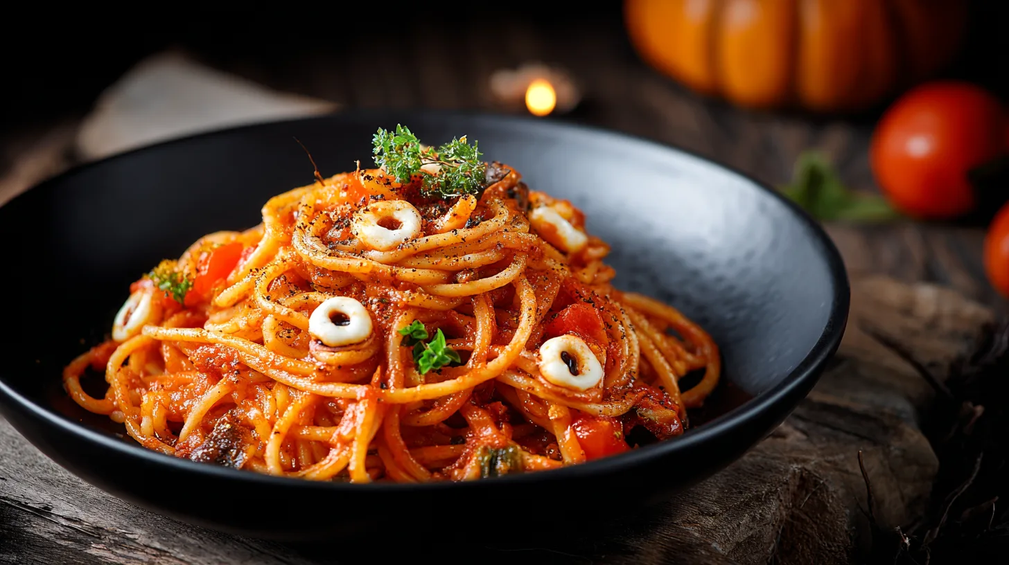 This Bloody Spaghetti with Mozzarella Eyeballs Halloween Pasta provides substantial nutrition alongside its theatrical presentation: