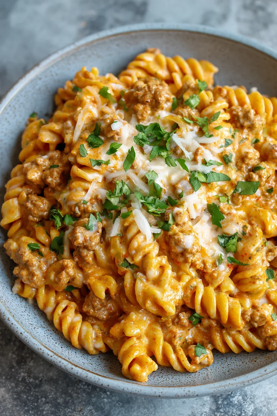 Transform this Cheesy Ground Turkey Pasta Creamy Comforting & So Easy into a complete meal experience. Serve alongside a crisp Caesar salad with homemade croutons, or pair with roasted broccoli drizzled with lemon juice. For elegant presentation, garnish with fresh herbs, a drizzle of quality olive oil, and cracked black pepper. Consider serving in individual cast-iron skillets for a restaurant-style presentation that keeps portions warm longer.