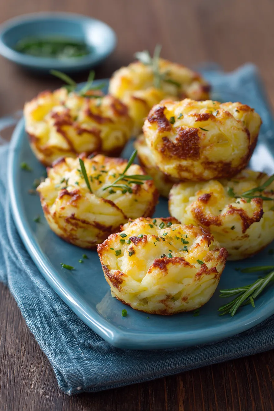 These cheesy mashed potato puffs provide 40% more protein than regular mashed potatoes due to the egg and cheese additions, making them a more balanced side dish option.