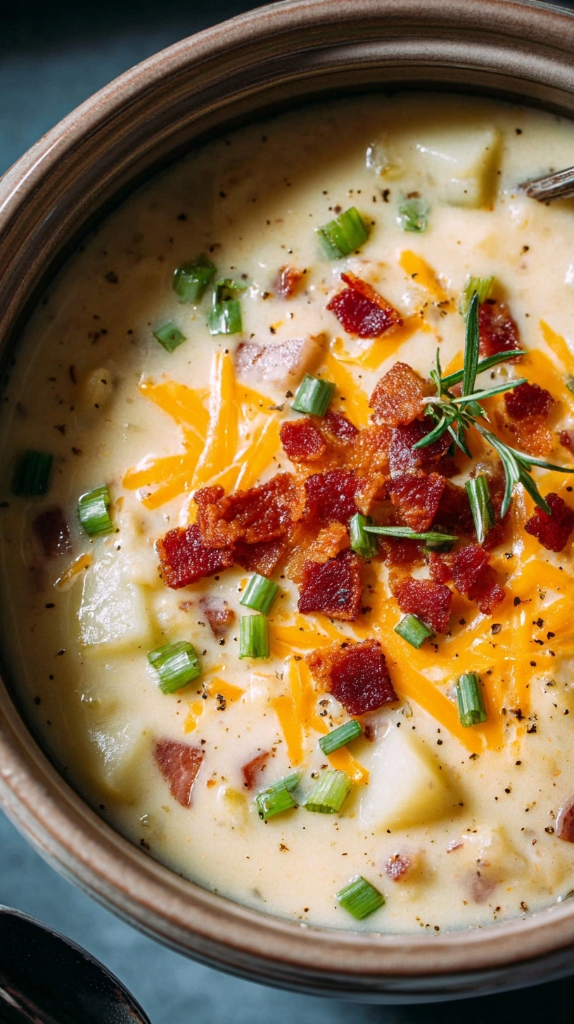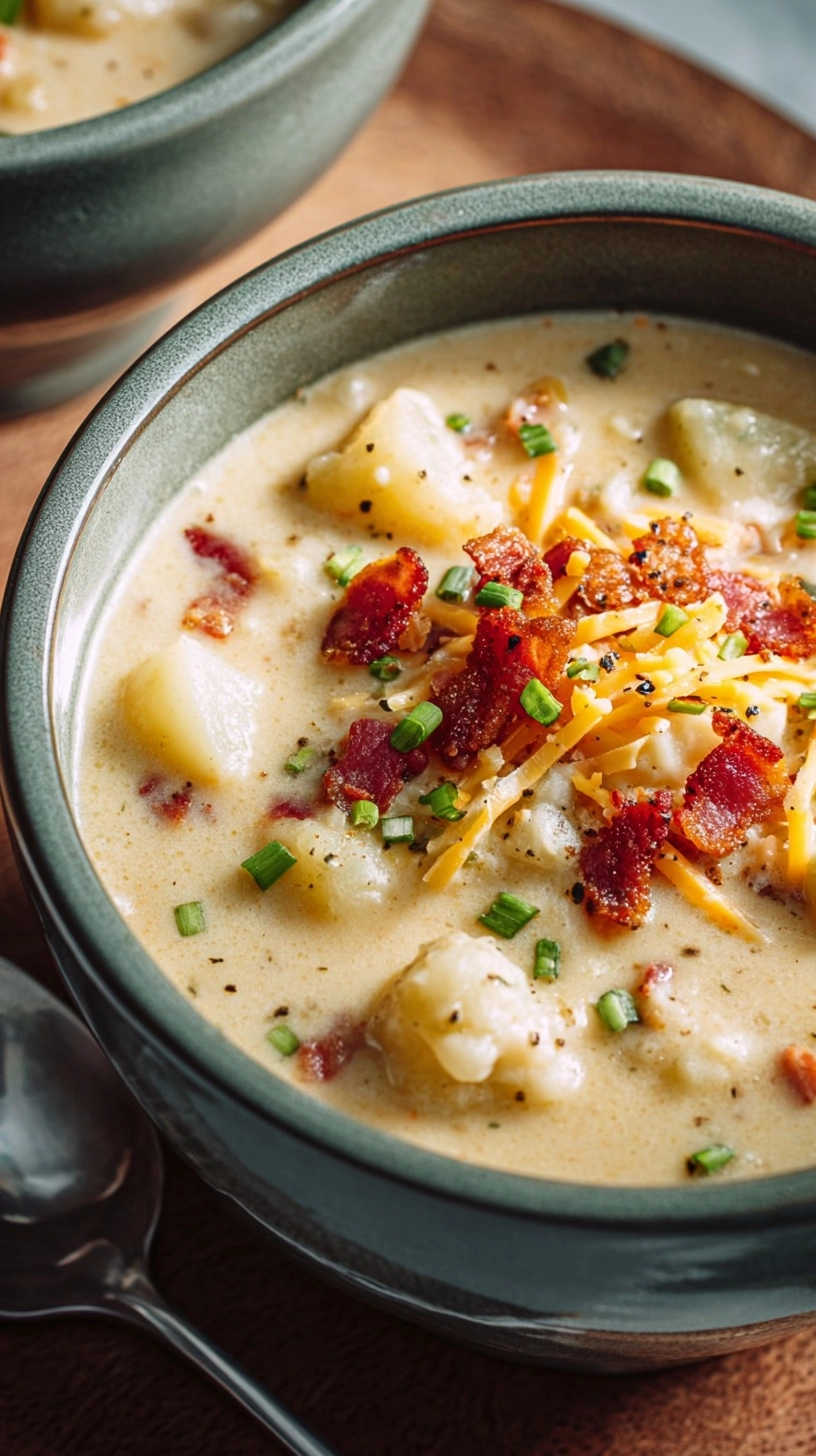 Taste and adjust seasoning—this is crucial as slow cooking can mellow salt levels. Garnish each serving with fresh green onions, additional cheese, and reserved bacon for textural contrast and visual appeal.