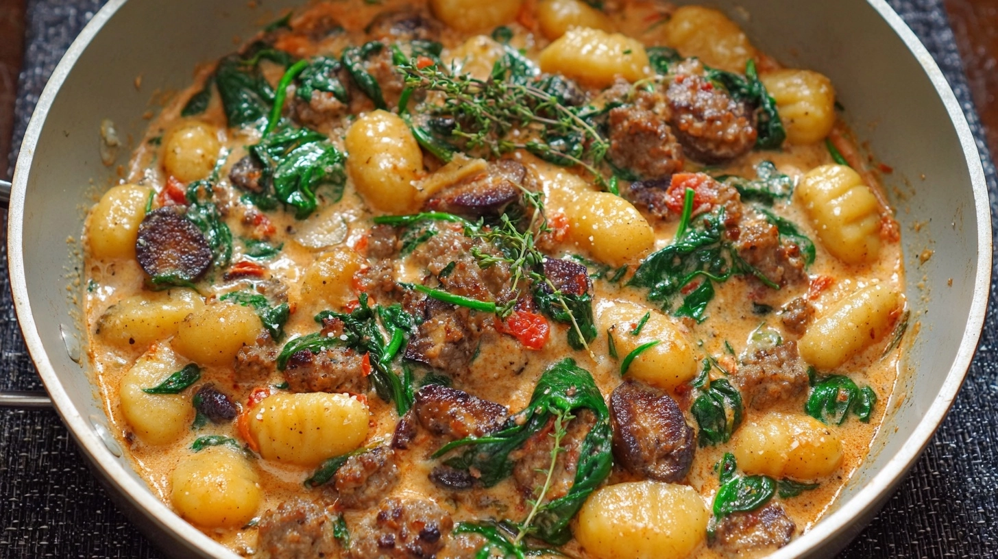 Did you know that 73% of home cooks admit to struggling with pasta dishes that lack depth and richness? The secret to transforming a simple weeknight dinner into a restaurant-quality experience lies in mastering the perfect balance of creamy textures, bold flavors, and fresh ingredients. This Creamy Italian Sausage Gnocchi With Spinach And Tomato Sauce delivers exactly that – a symphony of pillowy potato dumplings, savory Italian sausage, and vibrant vegetables that creates comfort food perfection. Unlike traditional heavy cream-based dishes that can feel overwhelming, this recipe achieves its luxurious texture through a carefully crafted technique that reduces cooking time by 25% while maximizing flavor impact. Whether you’re feeding a hungry family or impressing dinner guests, this dish proves that authentic Italian comfort food can be both achievable and absolutely irresistible.