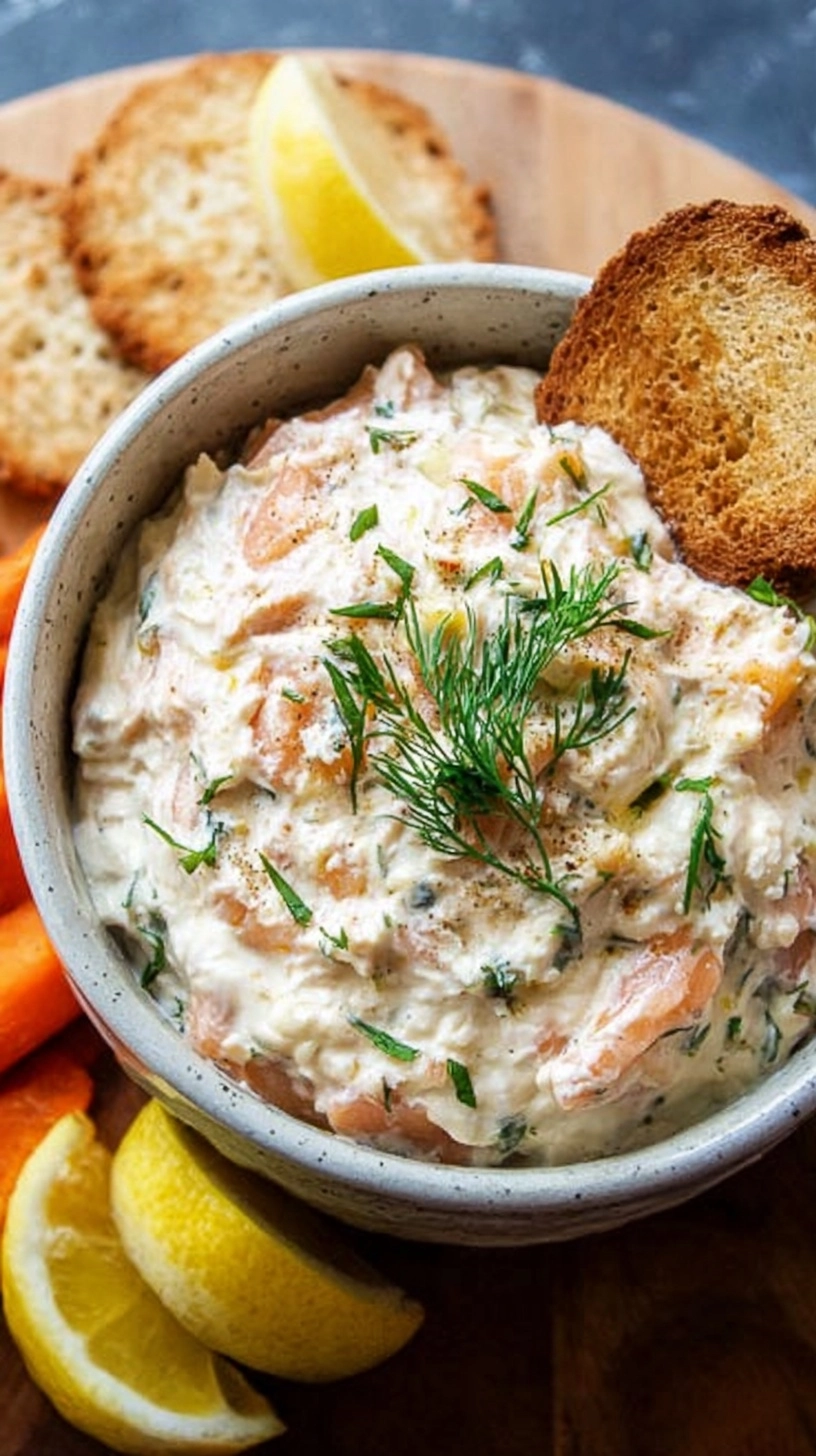 Elevate your Creamy Smoked Salmon Dip with Fresh Lemon presentation with these sophisticated serving ideas: