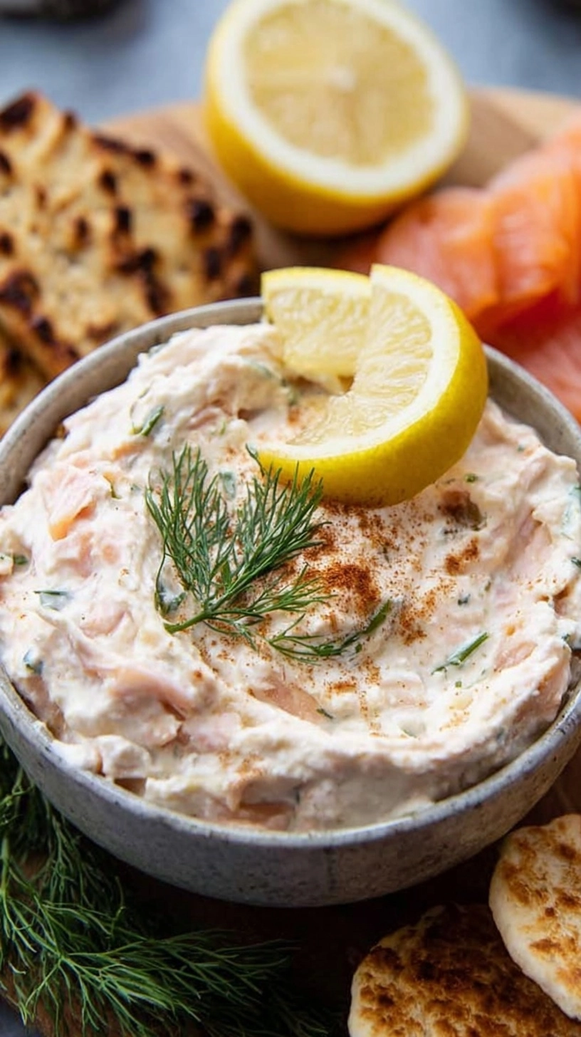Present this Creamy Smoked Salmon Dip with Fresh Lemon alongside cucumber rounds, endive spears, or toasted baguette slices for elegant entertaining. For casual gatherings, everything bagel chips or crispy pita triangles provide satisfying crunch.