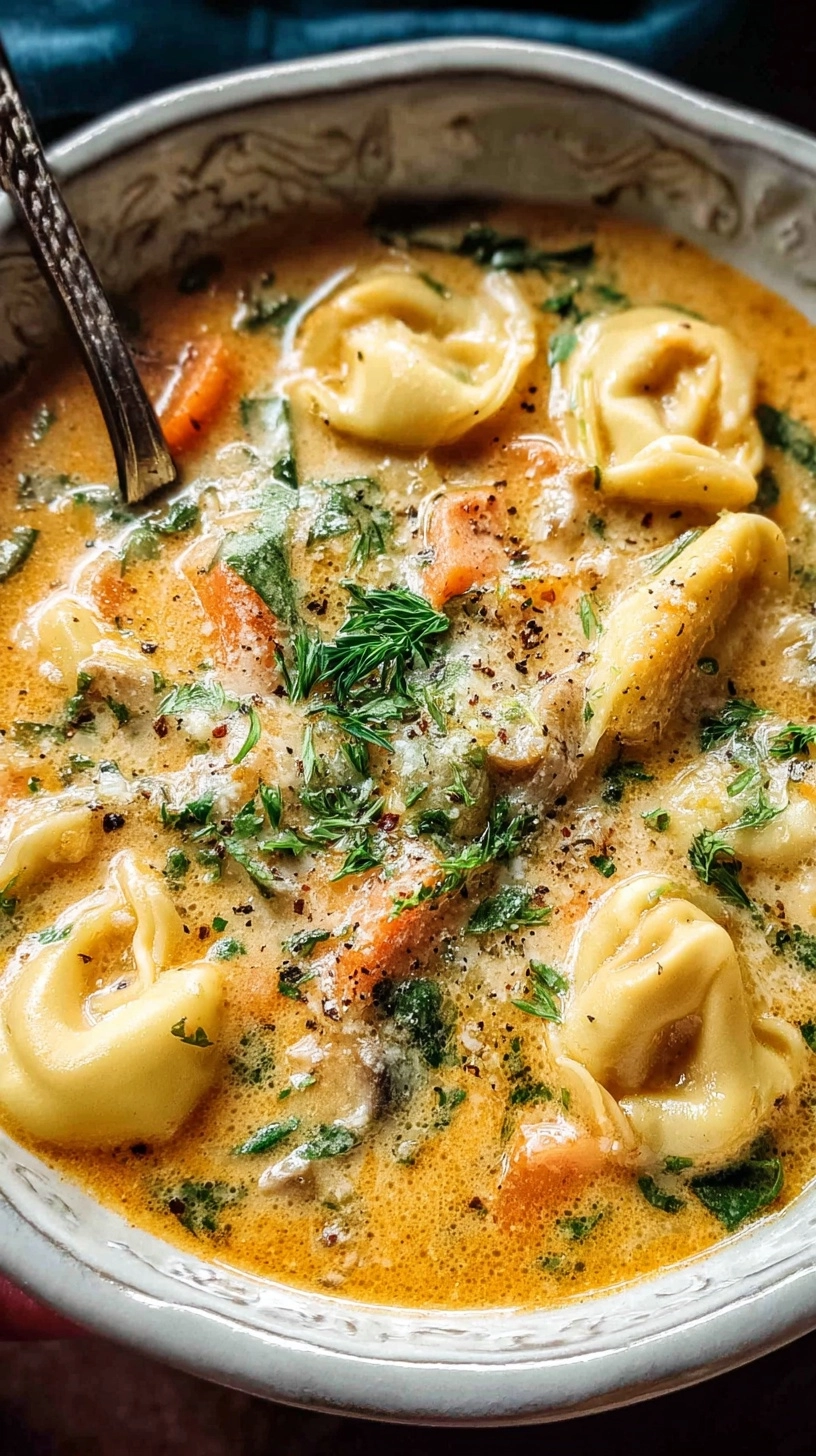 Store leftover creamy tortellini soup in the refrigerator for up to 4 days in airtight containers. Note that the tortellini will continue absorbing liquid, so add extra broth when reheating. For best results, reheat gently on the stovetop over low heat, stirring frequently to prevent scorching. This soup can be frozen for up to 2 months, though the cream may separate slightly upon thawing – simply whisk vigorously while reheating to restore smoothness. Consider freezing the soup base without tortellini and adding fresh pasta when reheating for optimal texture.