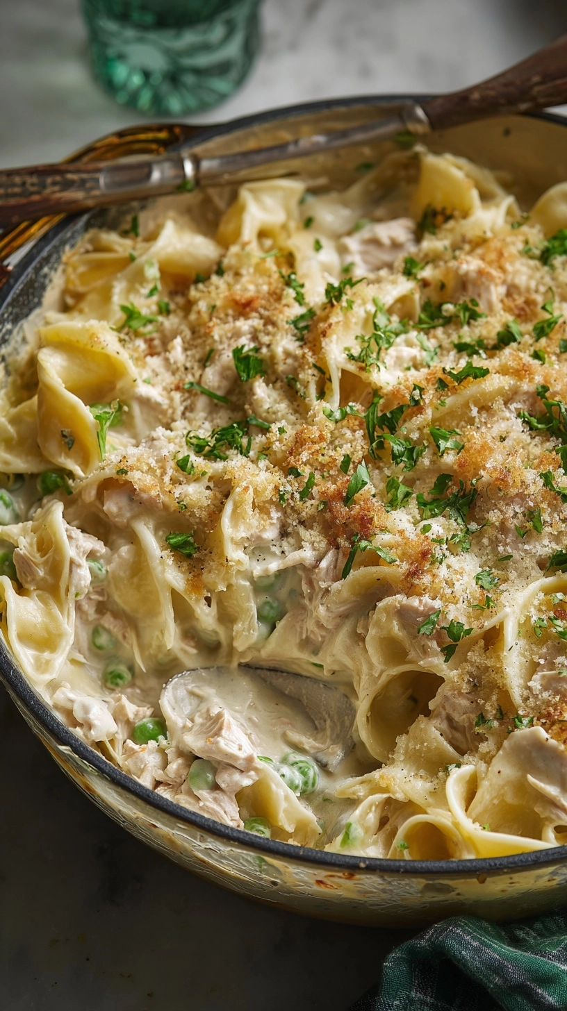 Pair your creamy tuna noodle casserole with a crisp garden salad featuring mixed greens and cherry tomatoes to balance the rich, comforting flavors. Roasted asparagus or steamed broccoli provides excellent textural contrast and adds vibrant color to your plate.