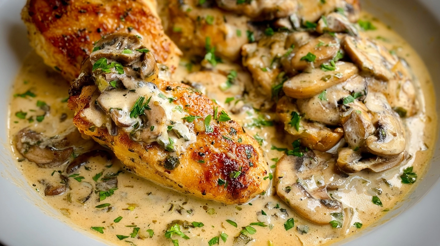 Return seared chicken to the pan, nestling pieces into the creamy mushroom mixture. Cover and simmer gently for 12-15 minutes until chicken reaches an internal temperature of 165°F. The gentle cooking method ensures tender, juicy results while allowing flavors to meld beautifully.