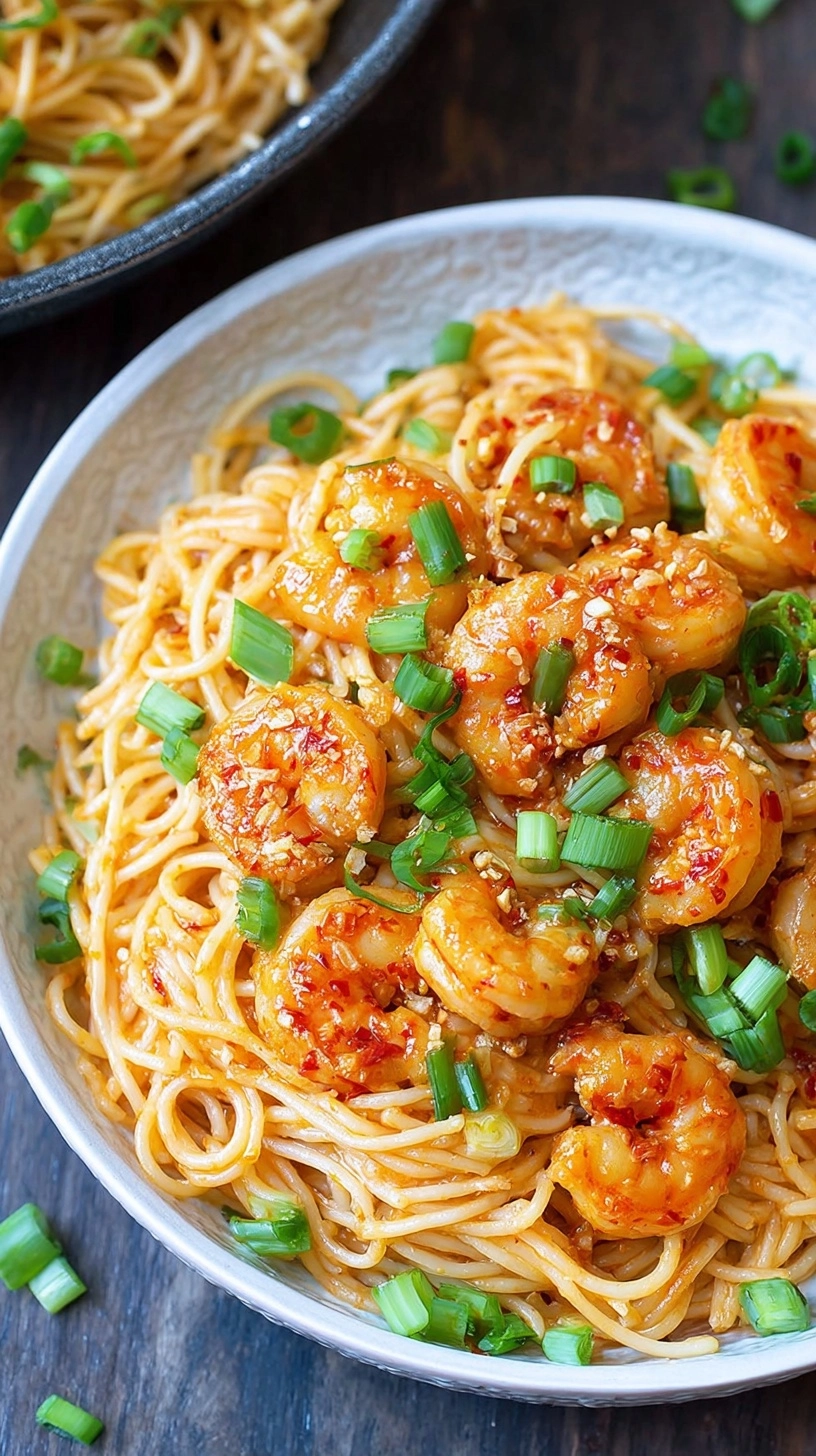 Present your Easy Bang Bang Shrimp Pasta in warmed bowls topped with fresh cilantro, sliced green onions, and a lime wedge for brightness. Pair with a crisp cucumber salad dressed in rice vinegar to balance the rich flavors. For entertaining, serve family-style in a large platter garnished with edible flowers and microgreens. The vibrant colors and textures create an Instagram-worthy presentation that tastes even better than it looks.