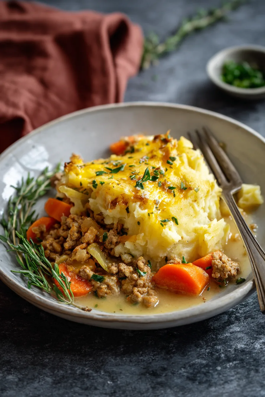 Elevate your Easy Ground Turkey Shepherd’s Pie presentation by serving alongside a crisp mixed greens salad with apple cider vinaigrette, which provides acidic contrast to the rich, savory flavors. Consider pairing with roasted Brussels sprouts or steamed broccoli to add color and additional nutrients. For special occasions, garnish individual portions with fresh microgreens or a drizzle of herb oil. This dish pairs beautifully with crusty whole grain bread for those wanting additional fiber.