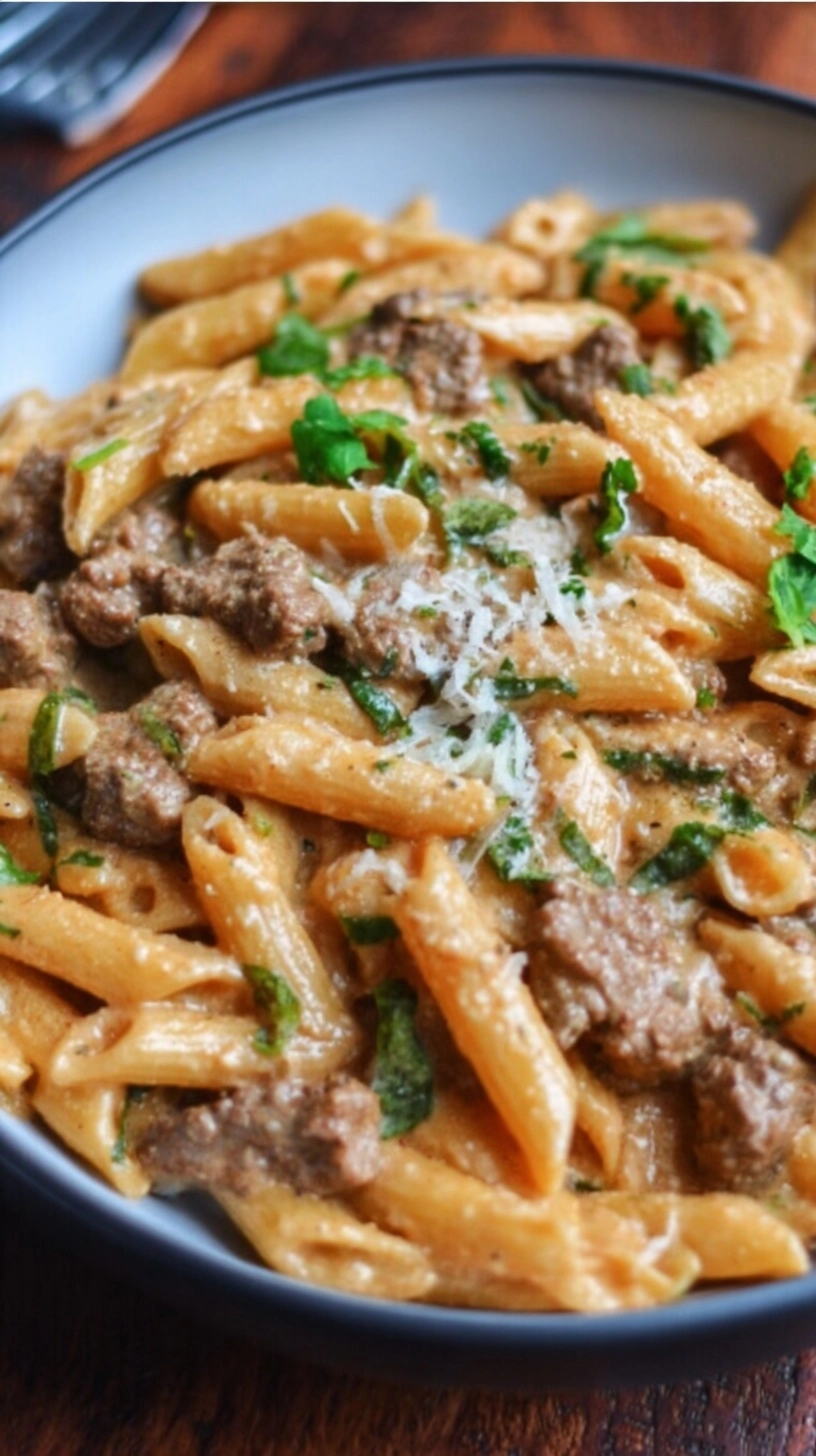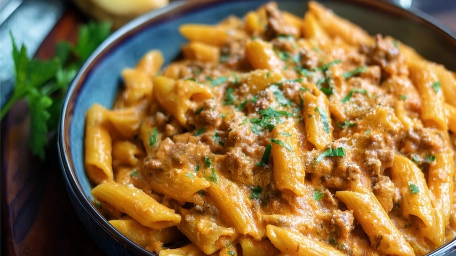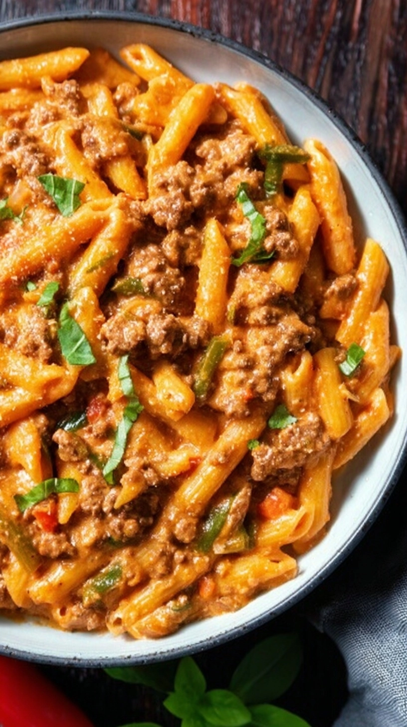 A: Penne, rigatoni, or rotini work excellently because their ridges and hollow centers capture the creamy sauce. Avoid long pasta like spaghetti, which doesn’t integrate as well with chunky meat sauce.