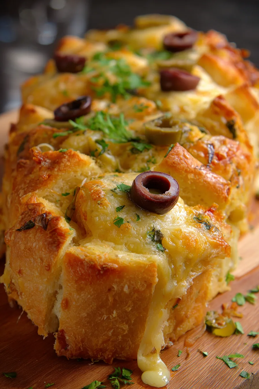 This Easy Olive Cheese Bread Appetizer shines in numerous serving contexts. Pair with a Mediterranean mezze platter including hummus, roasted red peppers, and fresh vegetables. For wine-free entertaining, serve alongside sparkling grape juice or herb-infused sparkling water. The appetizer complements soup courses beautifully – particularly tomato basil or minestrone varieties. For brunch gatherings, arrange alongside fresh fruit and create a savory-sweet balance that appeals to diverse palates.