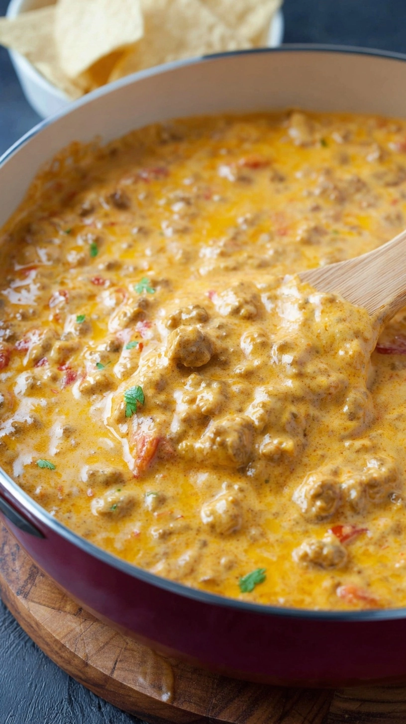 Elevate your Easy Rotel Dip With Sausage presentation with these crowd-pleasing serving strategies. Classic pairings: Serve with sturdy tortilla chips, toasted baguette slices, or colorful bell pepper strips for dipping. Creative vessels: Present in a slow cooker set to “warm” for extended parties, or use a cast-iron skillet for rustic charm. Garnish game-changers: Top with fresh cilantro, diced avocado, or a sprinkle of smoked paprika for visual appeal. Portion control: Offer individual ramekins for more elegant gatherings, or create a dip bar with various chip options and toppings for customization.