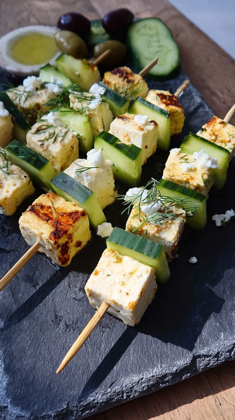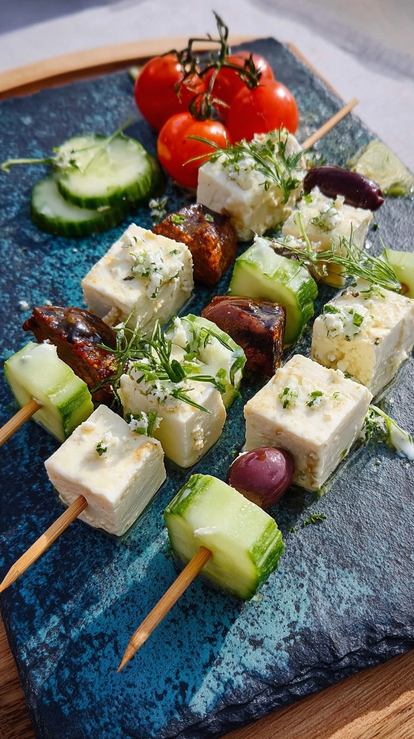 Present your Feta Spieße mit Gurke Rezept as the star of a Mediterranean mezze platter alongside warm pita bread, kalamata olives, and hummus. These skewers pair beautifully with sparkling water infused with lemon and mint for a refreshing non-alcoholic beverage option. For dinner parties, serve them as elegant passed appetizers that guests can enjoy while mingling. Create a colorful arrangement on wooden boards with fresh herbs as natural decoration. Consider preparing a double batch for larger gatherings, as these disappear quickly. The skewers also work wonderfully as a light lunch option served over mixed greens with extra lemon dressing.