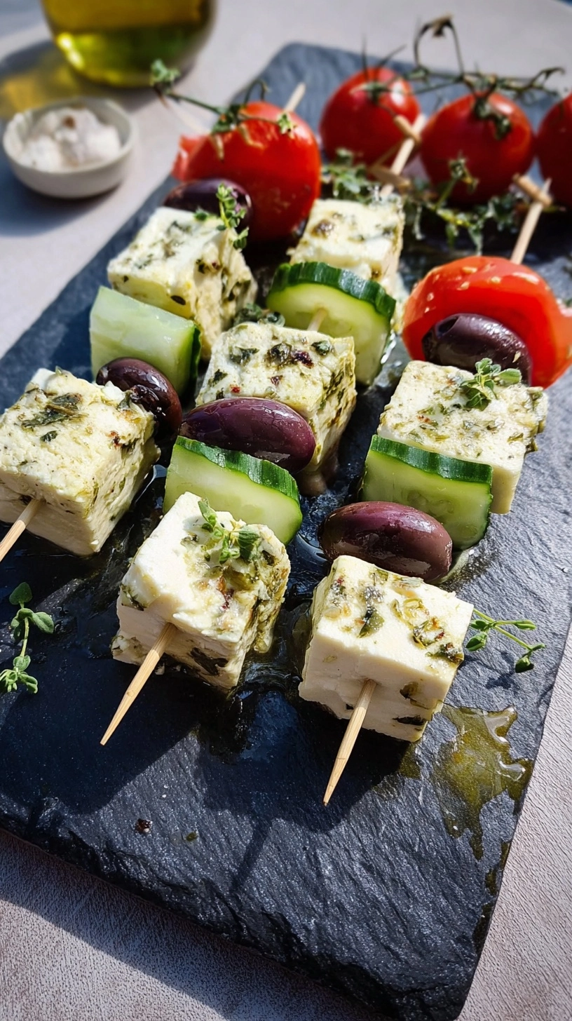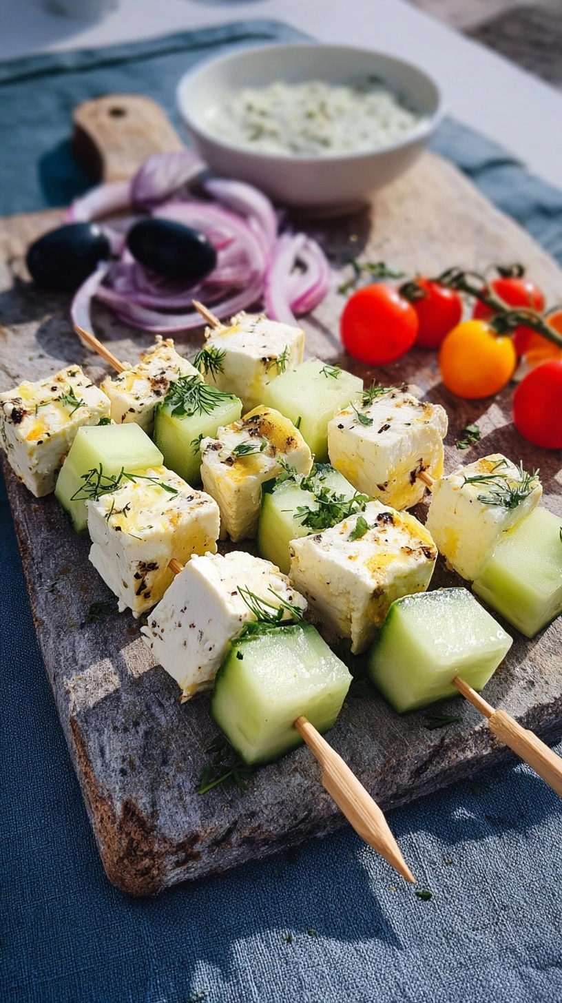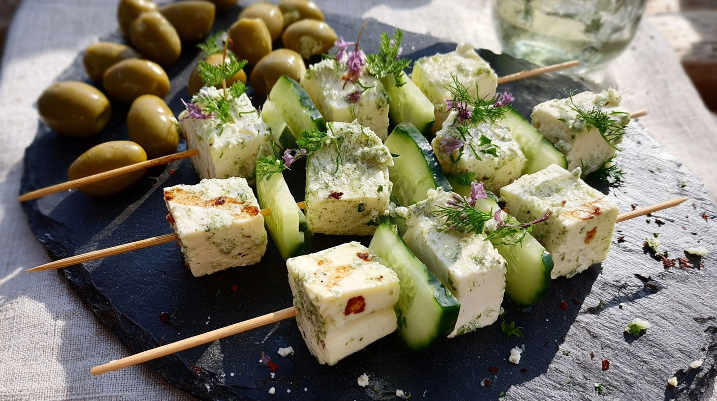 Present your Feta Spieße mit Gurke Rezept as part of a Mediterranean mezze spread alongside hummus, olives, and warm pita bread. These skewers also shine as: