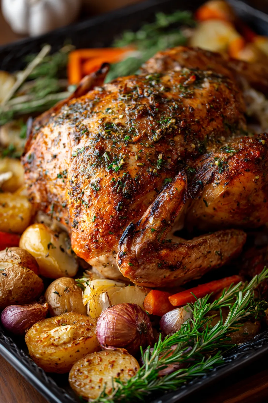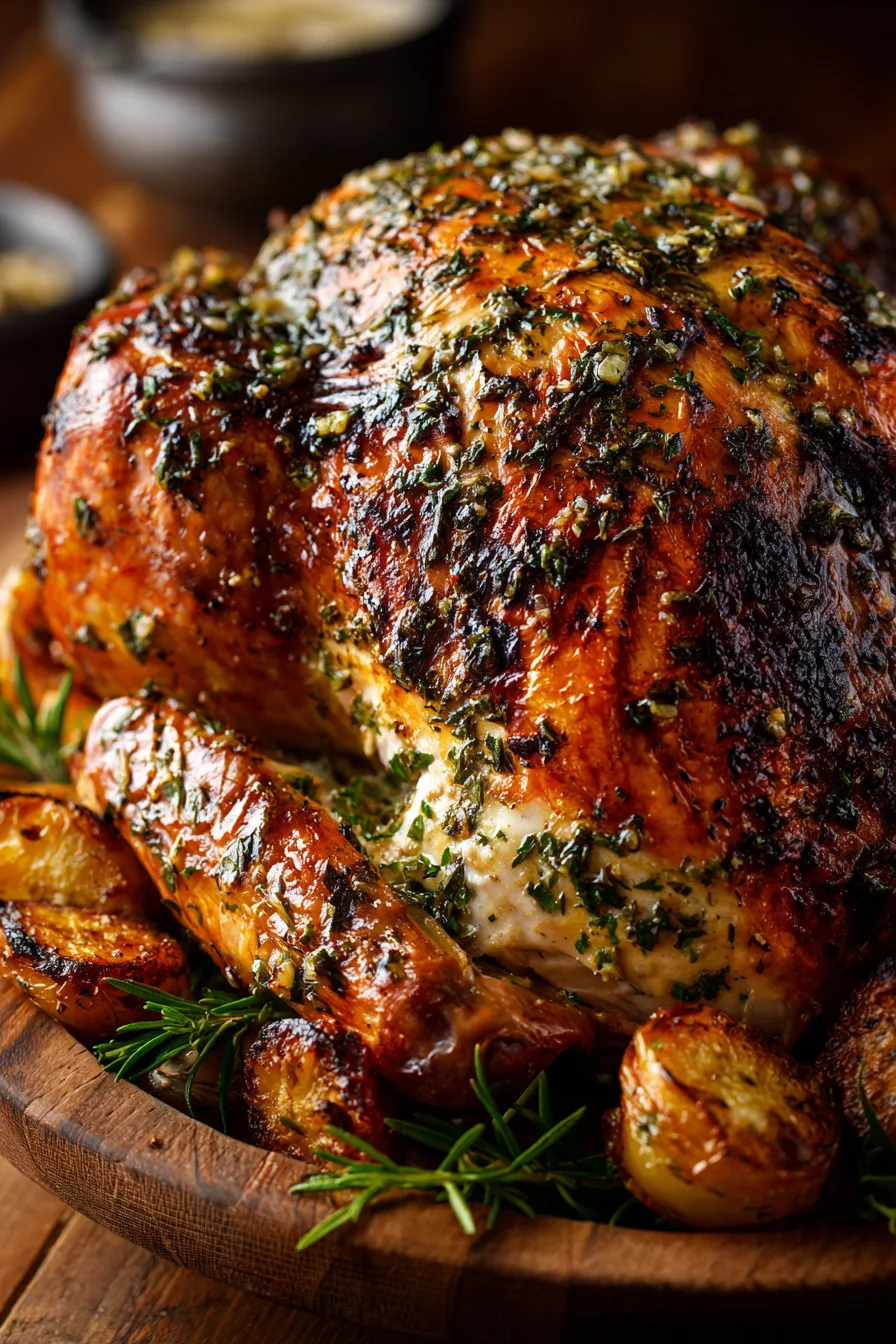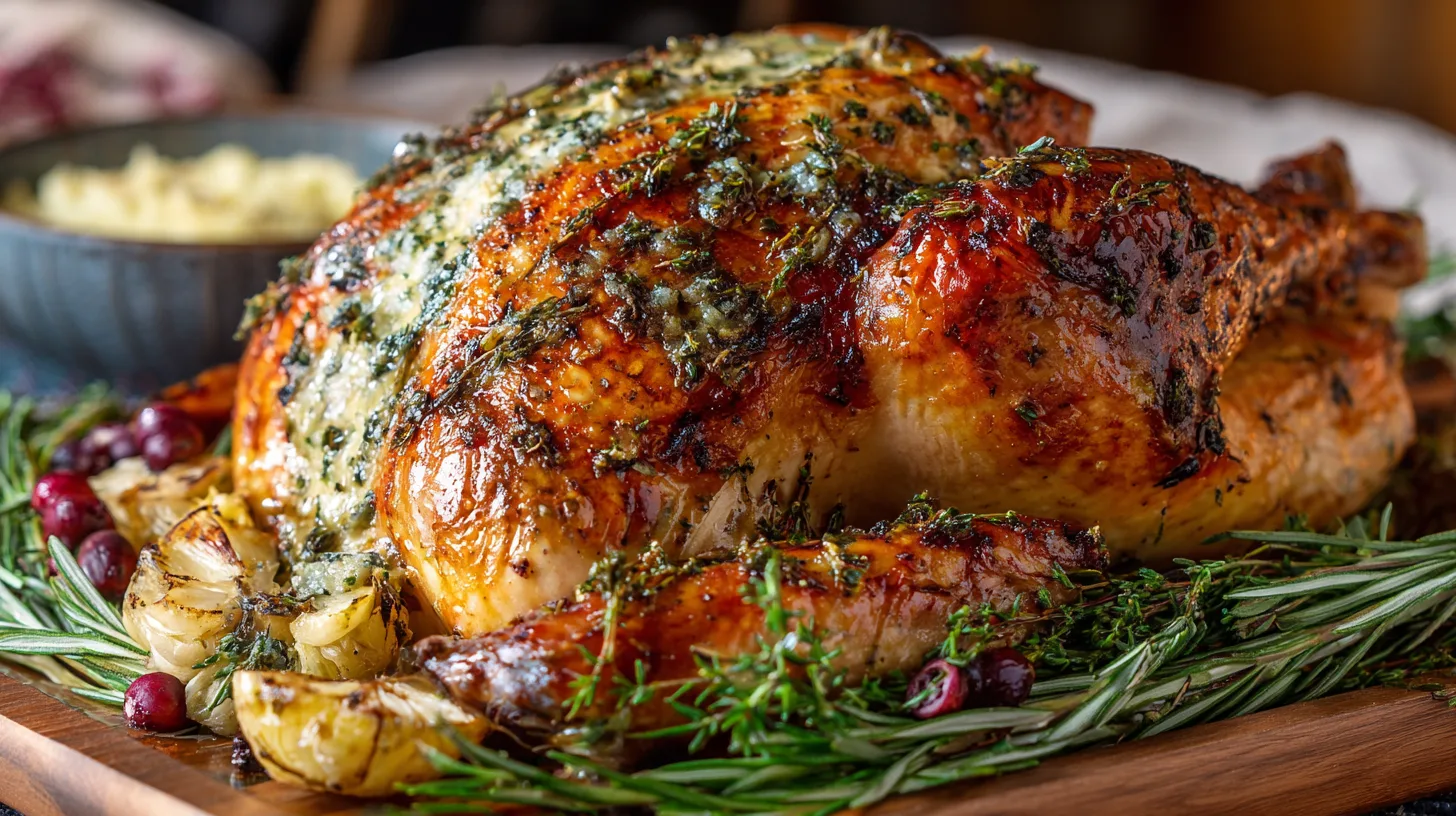 Complement the rich, savory flavors with cranberry sauce, wild rice stuffing, or honey-glazed carrots. The herb butter creates natural pan gravy—simply strain the drippings and whisk with a tablespoon of flour for instant sauce.
