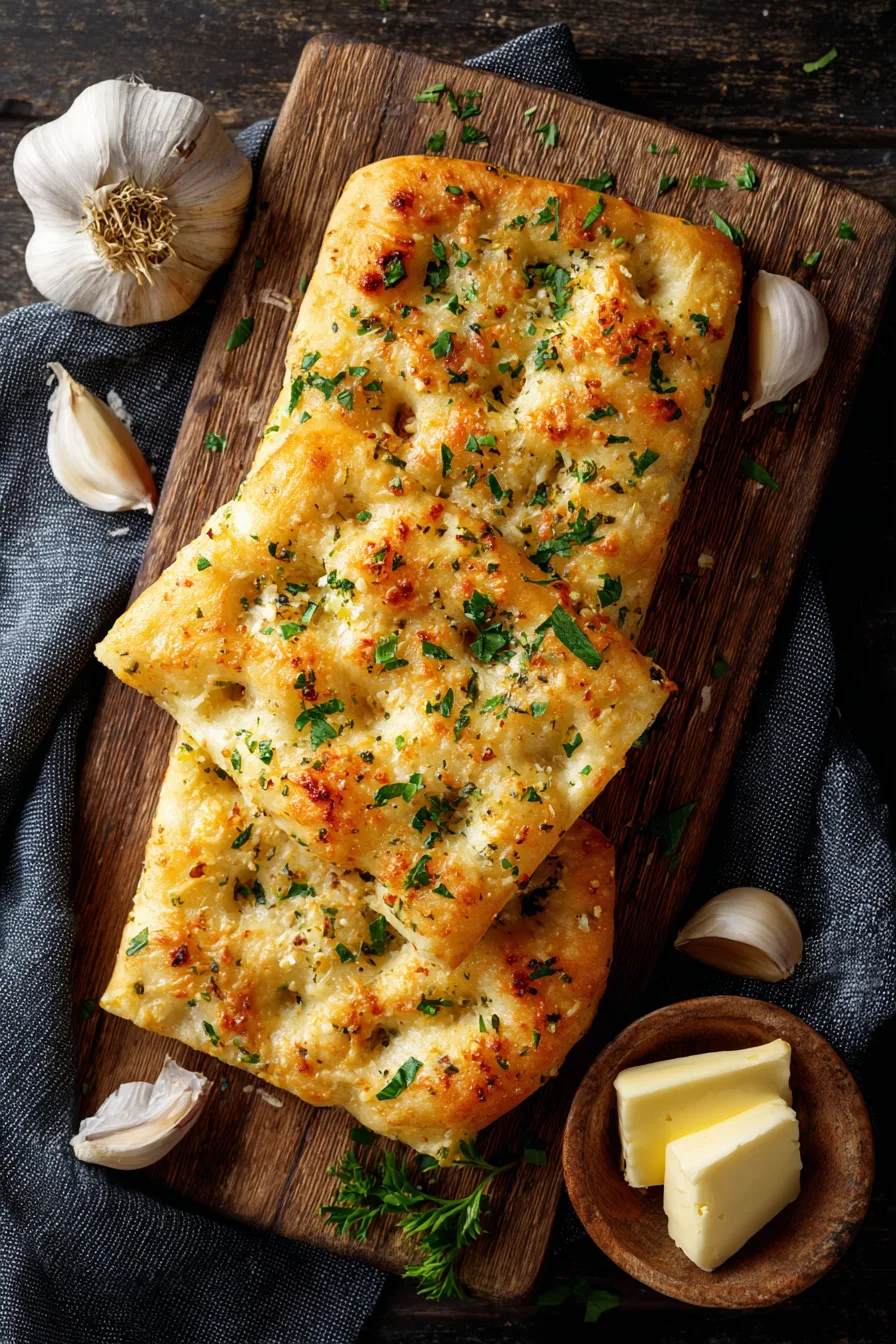 Slice thick and serve with hearty soups—the bread’s sturdy texture makes it perfect for dipping. Try it alongside tomato basil soup, where the garlic-Parmesan flavors create a complementary flavor bridge.