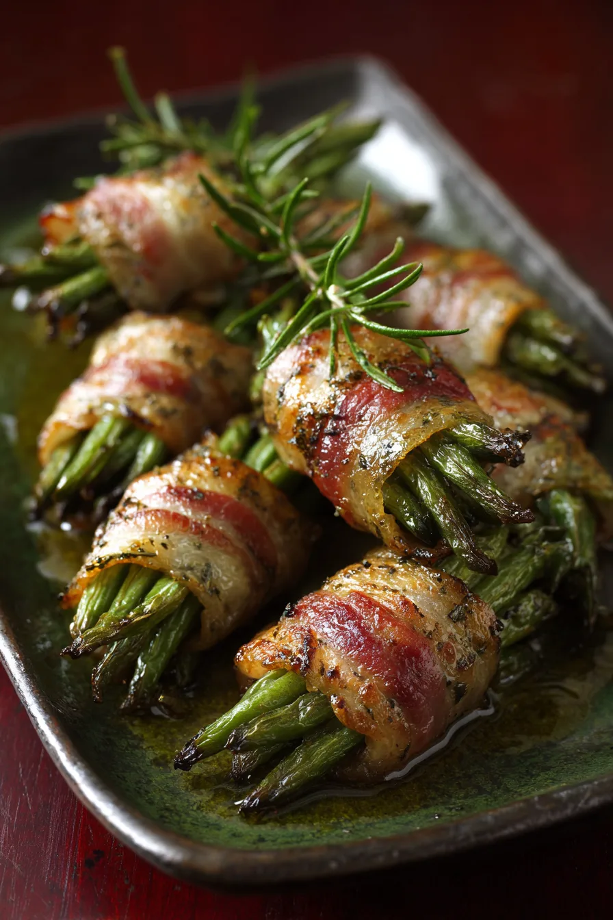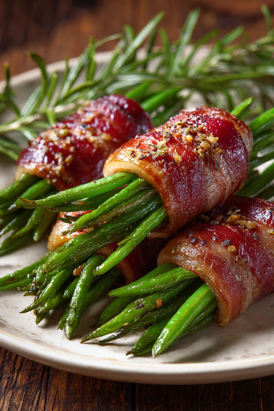 Green bean bundles shine as the perfect complement to robust main dishes. Pair them with herb-crusted roasted chicken for a complete comfort meal that photographs beautifully. They’re exceptional alongside grilled salmon, where the bacon’s smokiness balances the fish’s delicate flavor.