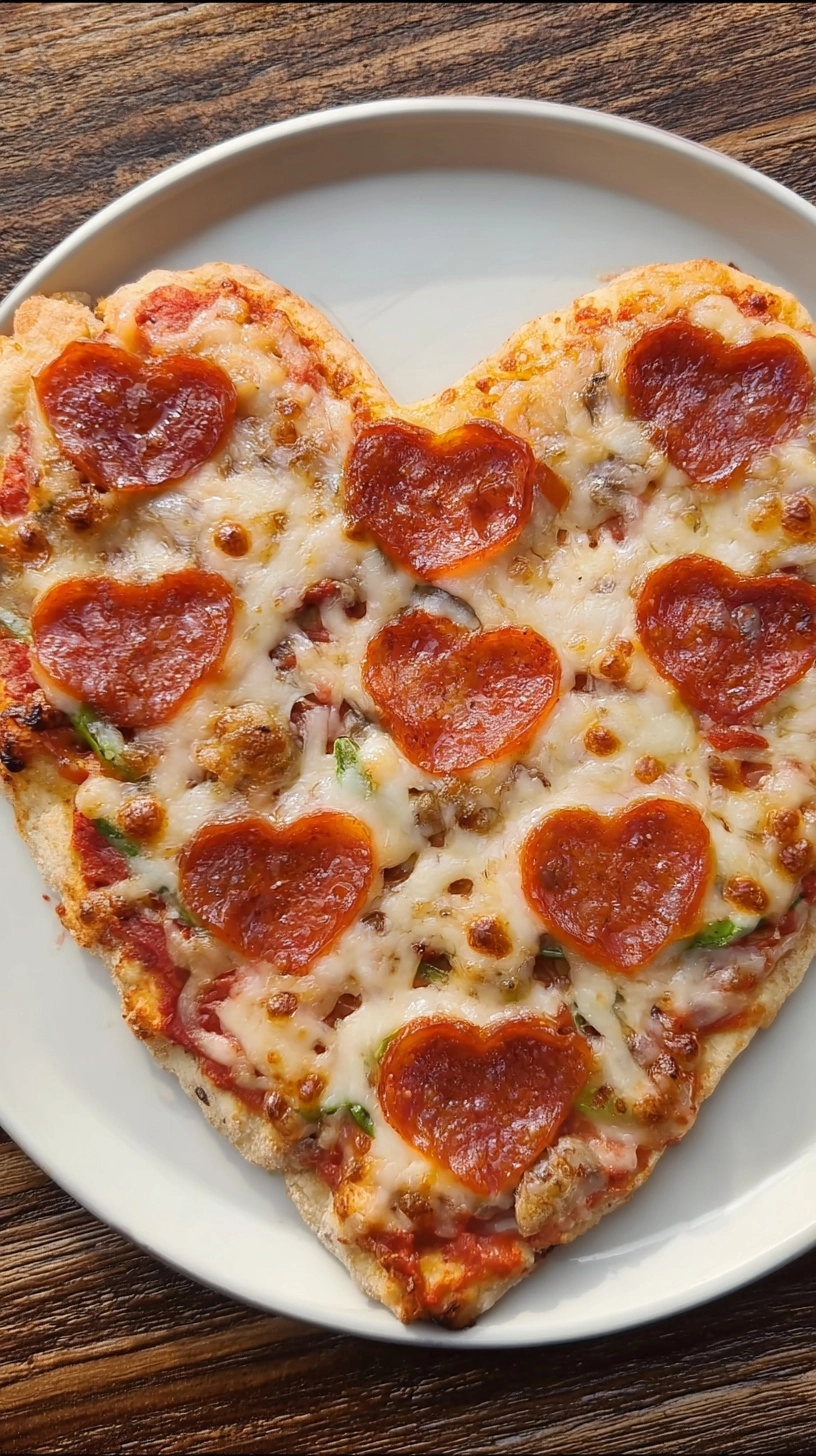 This heart shaped pizza proves that love truly is homemade, creating lasting memories one delicious slice at a time.