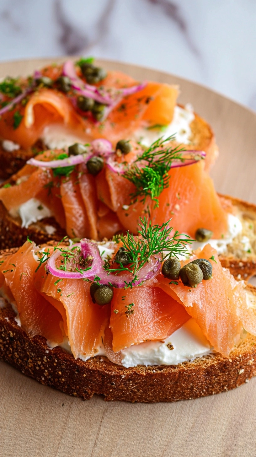 Lower Sodium Option: Choose low-sodium smoked salmon and reduce capers, compensating with additional fresh herbs and lemon zest.