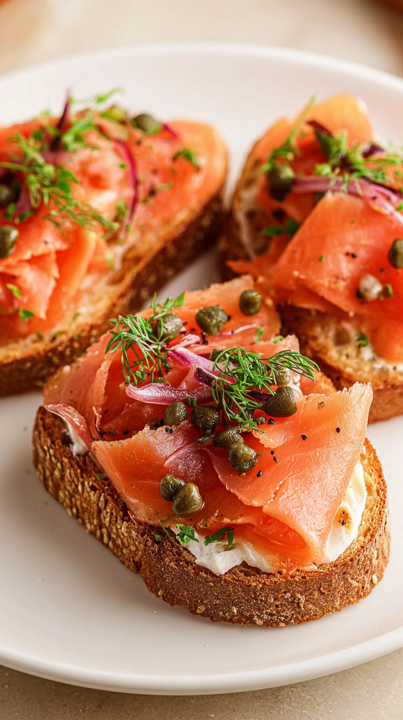 Transform this recipe into a lighter option by substituting Greek yogurt mixed with a touch of olive oil for the cream cheese – this reduces calories by 35% while boosting protein content. Choose whole grain or sprouted bread for added fiber and nutrients. For dairy-free versions, use cashew cream or avocado-based spreads. Vegetarians can replace salmon with thinly sliced smoked vegetables like eggplant or mushrooms, maintaining the sophisticated flavor profile while accommodating dietary preferences.