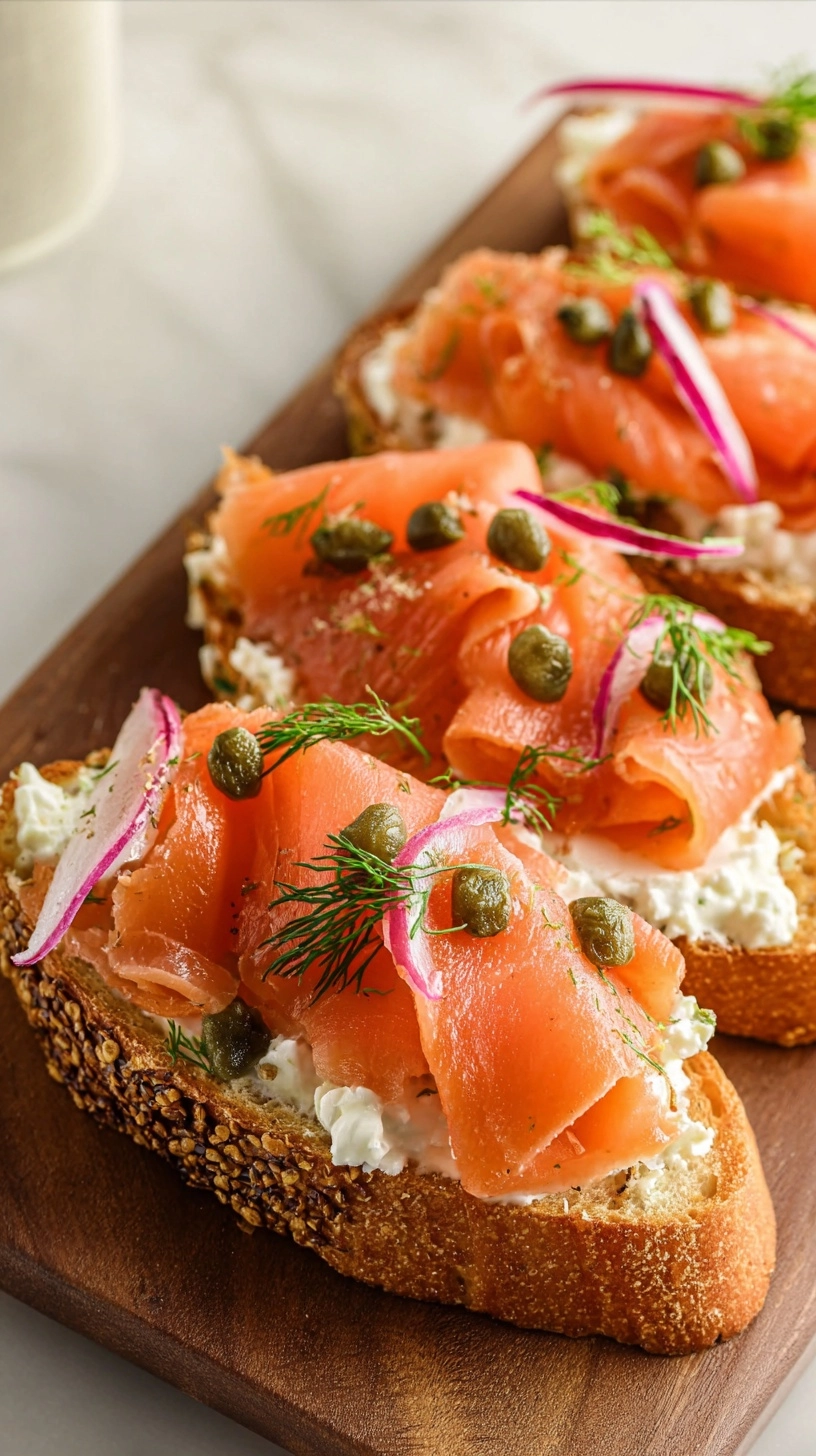Transform this indulgent appetizer into a lighter option by substituting Greek yogurt mixed with fresh herbs for half the cream cheese, reducing calories by 25% while increasing protein content. For gluten-free guests, use toasted sweet potato rounds or cauliflower slices as the base. Vegan alternatives include cashew-based cream cheese and smoked carrot “salmon” for those avoiding animal products while maintaining the sophisticated flavor profile.