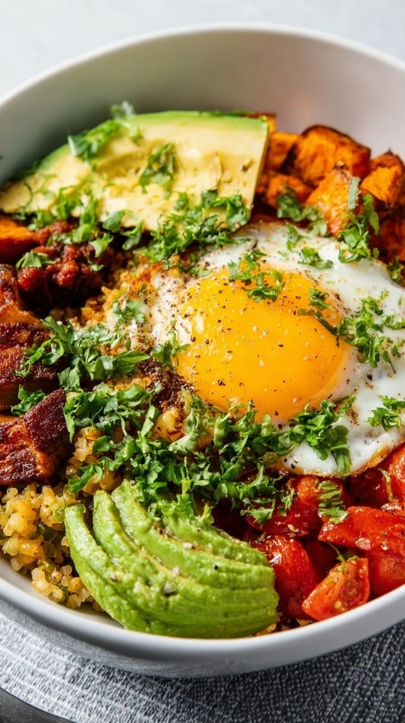 Elevate your breakfast experience by serving these bowls in wide, shallow ceramic dishes that showcase the colorful ingredients. Create a DIY breakfast bar by preparing components separately and letting family members customize their bowls. Pair with sparkling water infused with lime and mint, or serve alongside a small portion of fresh berries for natural sweetness. For meal prep enthusiasts, prepare components Sunday evening and assemble fresh bowls throughout the week for grab-and-go convenience.