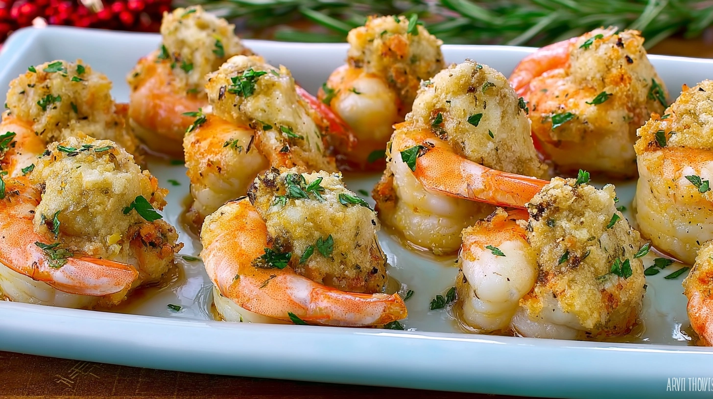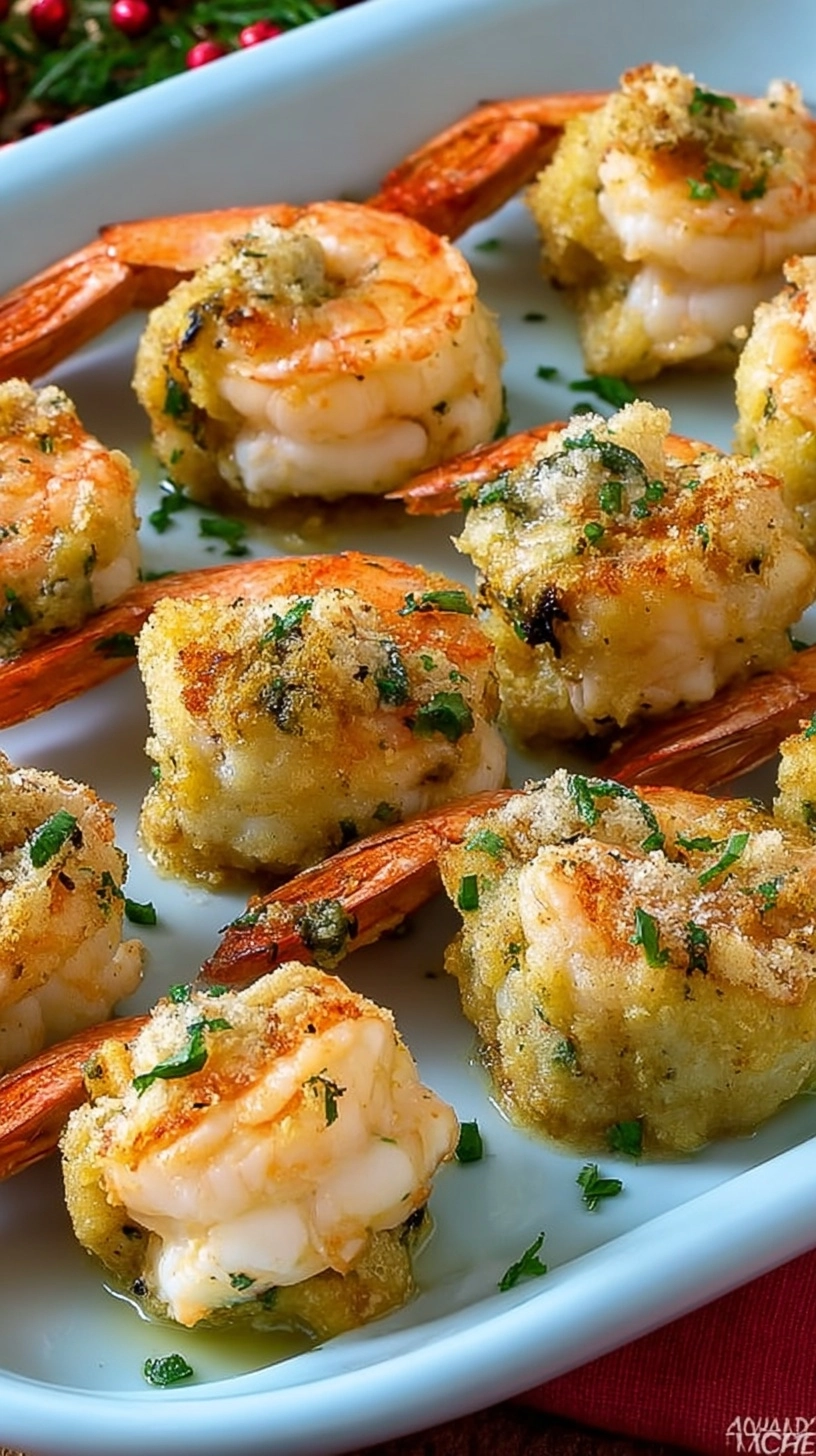 Advance Preparation: Assemble stuffed shrimp up to 4 hours ahead and refrigerate covered. Add breadcrumb topping just before baking for optimal crispness.