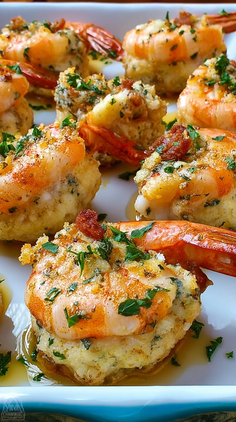 Store leftover stuffed shrimp in the refrigerator for up to 2 days in airtight containers. For best results, reheat in a 350°F oven for 5-7 minutes rather than using the microwave, which can make them rubbery. The crab mixture can be prepared up to 24 hours in advance and refrigerated separately. Raw stuffed shrimp can be assembled and frozen for up to 1 month – simply add 5 additional minutes to the cooking time when baking from frozen.