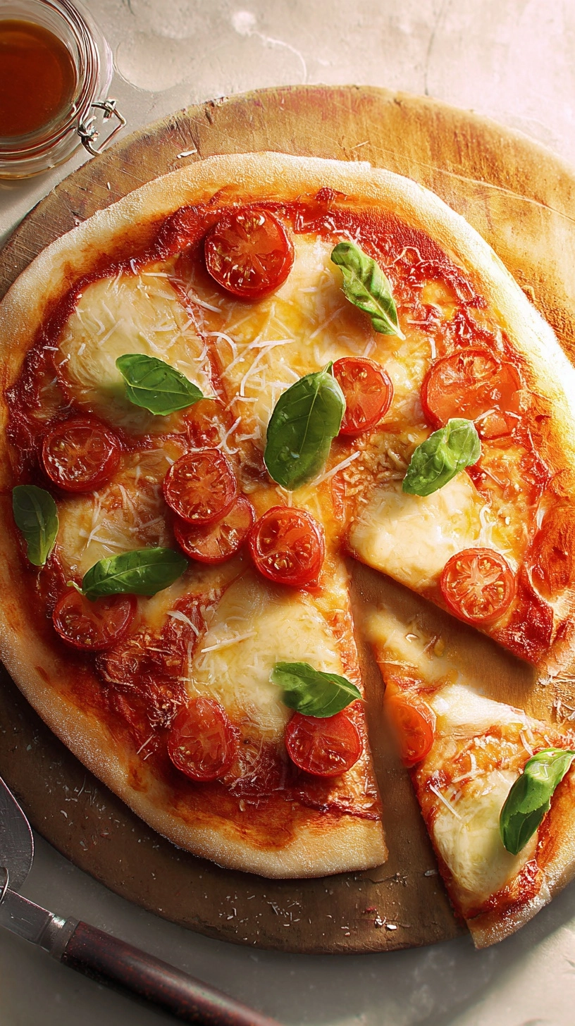 Store leftover Margarita pizza in the refrigerator for up to 3 days, wrapped individually in aluminum foil or stored in airtight containers. For optimal reheating, use a skillet over medium heat for 2-3 minutes to crisp the bottom, then cover briefly to melt the cheese. Pizza dough can be prepared up to 24 hours in advance and stored in the refrigerator, which actually improves flavor development. Freeze shaped dough balls for up to 3 months – simply thaw in the refrigerator overnight before use. Leftover tomato sauce keeps for one week refrigerated and can be frozen for up to 6 months in ice cube trays for convenient portioning.