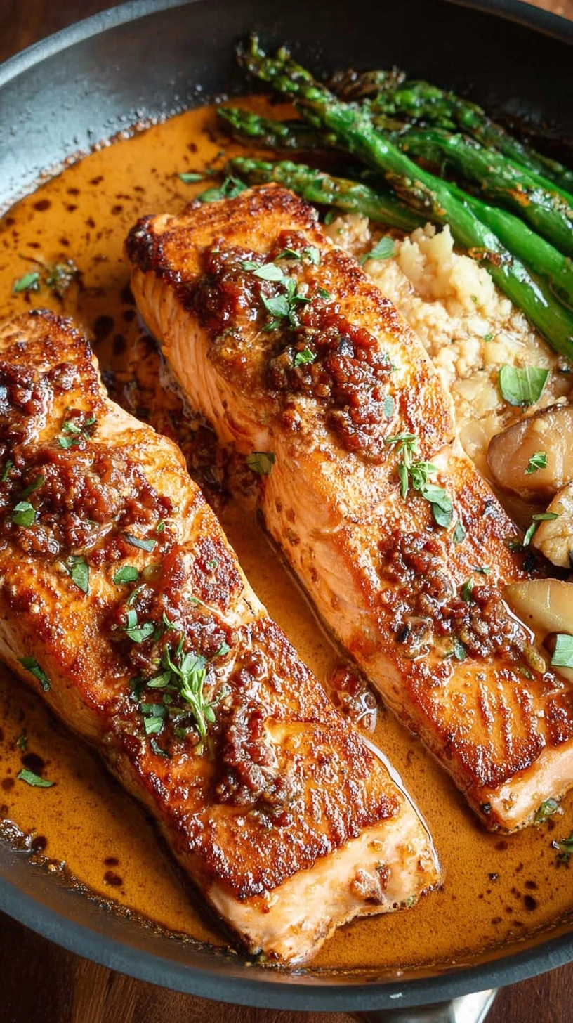 Elevate your marry me salmon recipe presentation with these inspired pairing ideas that enhance both flavor and visual appeal. Serve over creamy risotto, garlic butter pasta, or wild rice pilaf to absorb the luxurious sauce. For lighter options, pair with roasted asparagus, steamed broccoli, or a crisp arugula salad dressed with lemon vinaigrette. The rich sauce also complements crusty sourdough bread perfectly for sauce-sopping satisfaction. Wine alternative suggestions include sparkling grape juice or a sophisticated mocktail with lemon and herbs. Garnish with fresh basil leaves, lemon wedges, and a sprinkle of extra Parmesan for restaurant-worthy presentation.