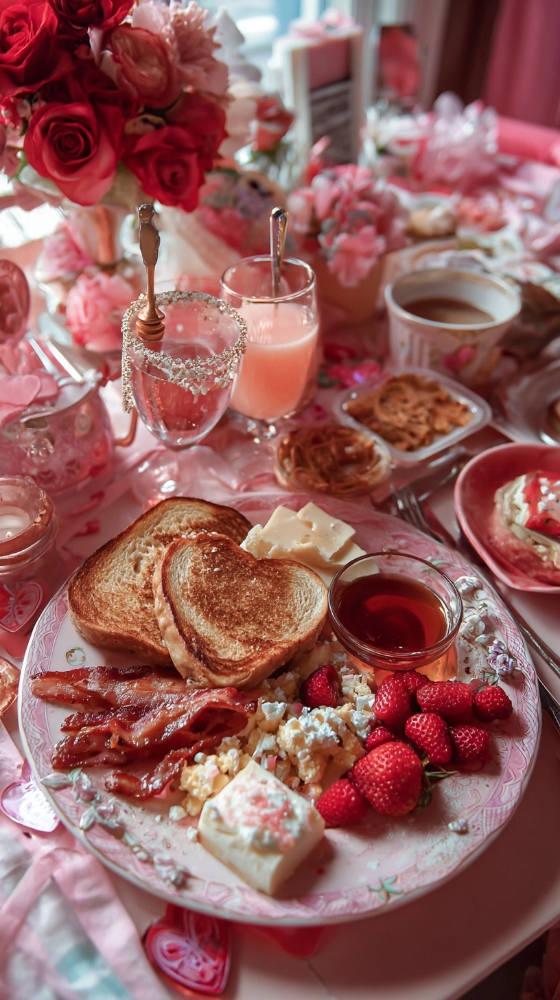 Each serving of your Pink and Red Galentine’s Day Brunch provides approximately 380 calories, making it a satisfying yet reasonable morning indulgence. The berry compote contributes 45mg of vitamin C—that’s 50% of your daily requirement—while providing powerful antioxidants that support immune function. Protein content reaches 12g per serving, helping maintain energy levels throughout your celebration.