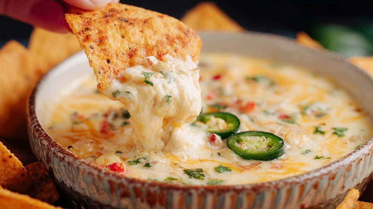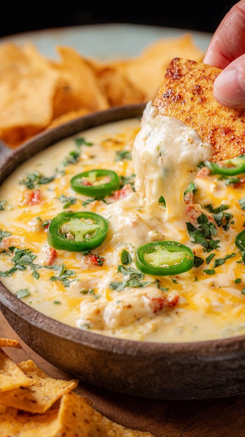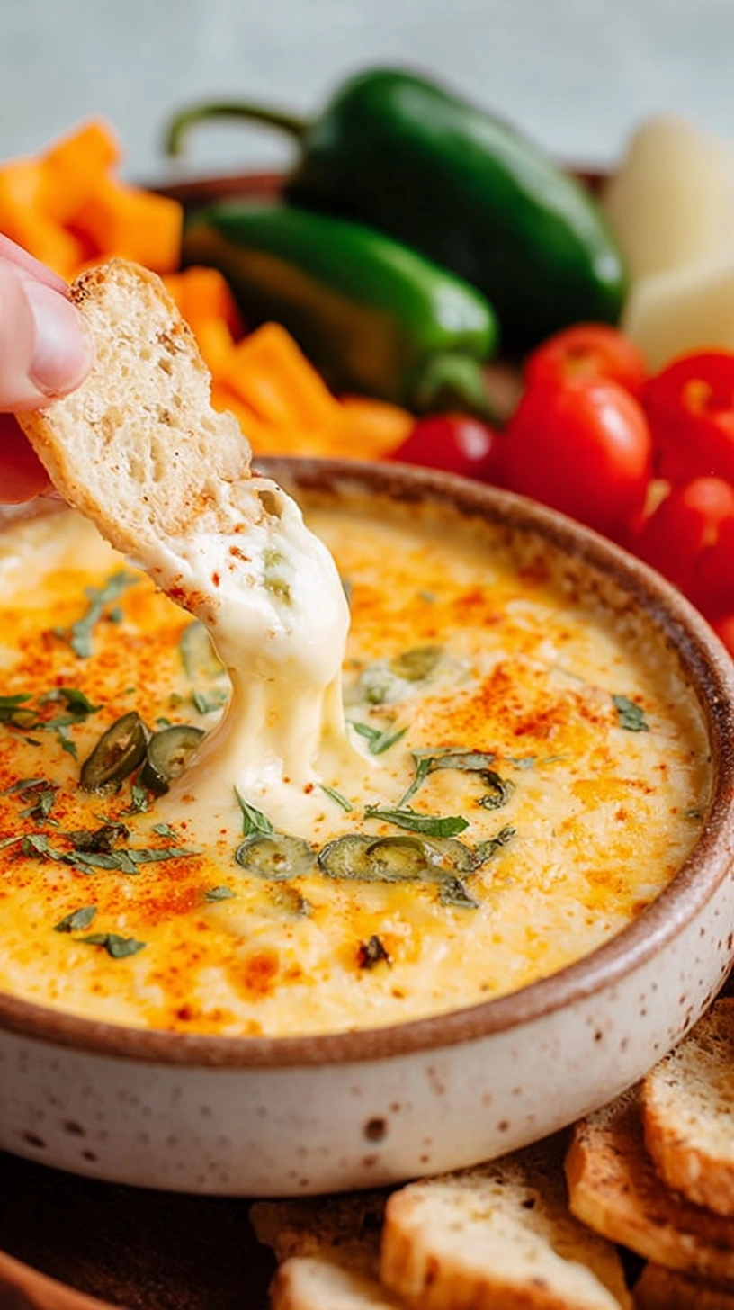 Classic Companions: Warm tortilla chips, fresh vegetable sticks, or crusty bread cubes provide perfect vehicles for this creamy creation.