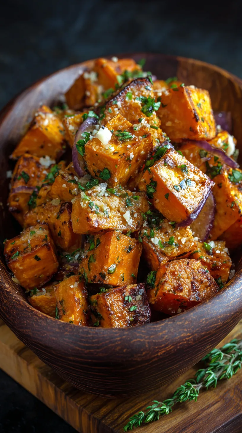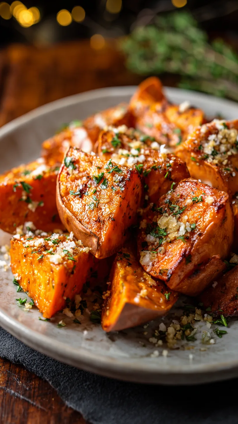 These versatile roasted sweet potatoes with garlic and Parmesan complement virtually any main course. Pair them with grilled chicken for a complete protein-packed meal, or serve alongside roasted vegetables for a stunning vegetarian feast.