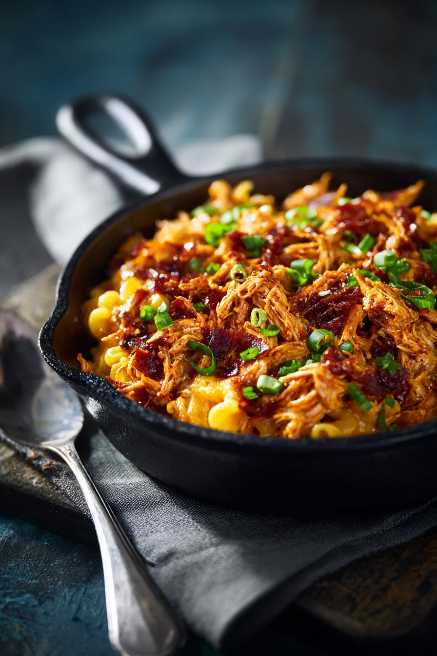 Remove cooked chicken and shred using two forks or a hand mixer on low speed (saves 50% of shredding time). Mix the shredded chicken with remaining BBQ sauce, allowing the flavors to marry. This step creates those coveted crispy-edged pieces that add textural contrast to your creamy mac and cheese.