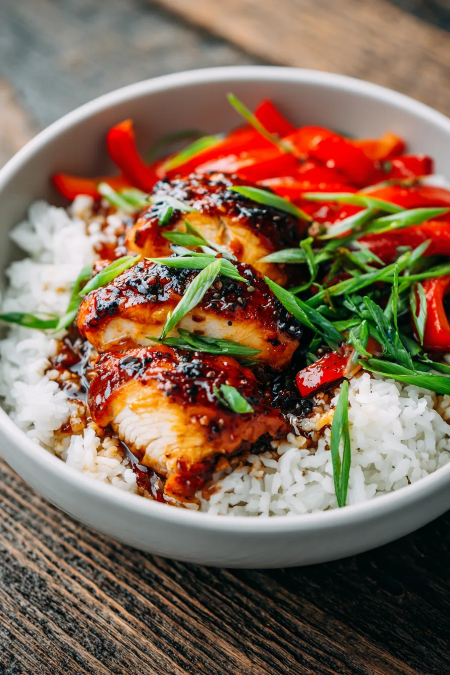 Elevate your sweet chili chicken presentation by serving over fluffy jasmine rice or cauliflower rice for a low-carb option. Create an impressive Asian-inspired bowl by adding steamed broccoli, julienned carrots, and edamame.