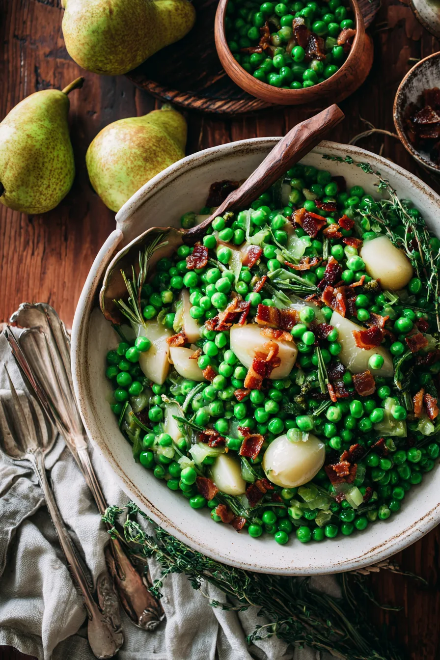 Did you know that 47% of Americans consider peas their least favorite vegetable, yet when paired with sweet pears and savory pancetta, they become the most requested side dish at family gatherings? This surprising transformation happens because the natural sweetness of pears balances the earthy flavor of peas while pancetta adds a rich, umami depth that completely changes the game. Thanksgiving Peas with Pear and Pancetta isn’t just another side dish—it’s a culinary revelation that converts even the most stubborn pea skeptics into enthusiastic fans. This elegant combination delivers restaurant-quality flavors using simple techniques that take just 25 minutes from start to finish, making it perfect for busy holiday kitchens where every minute counts.