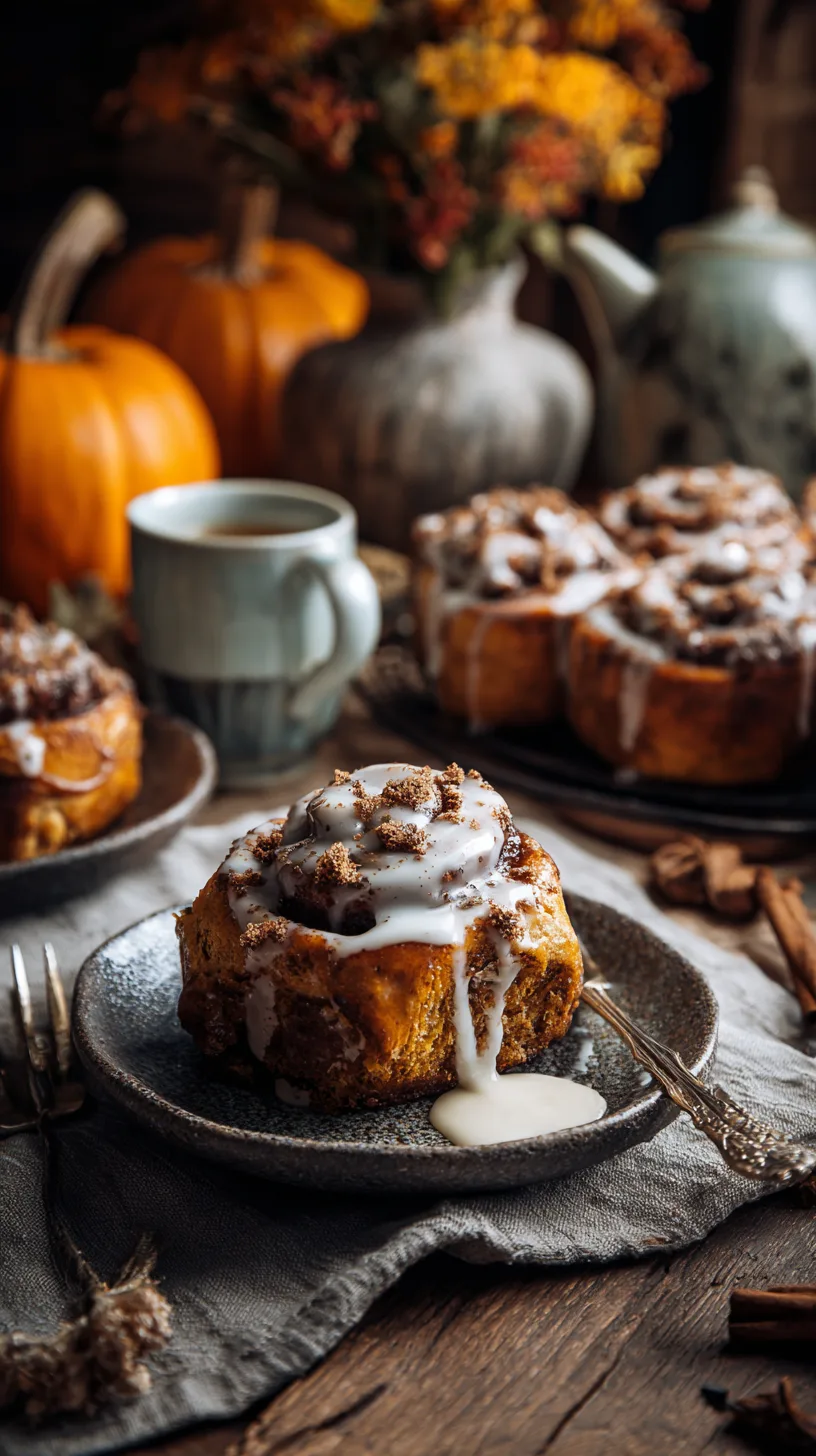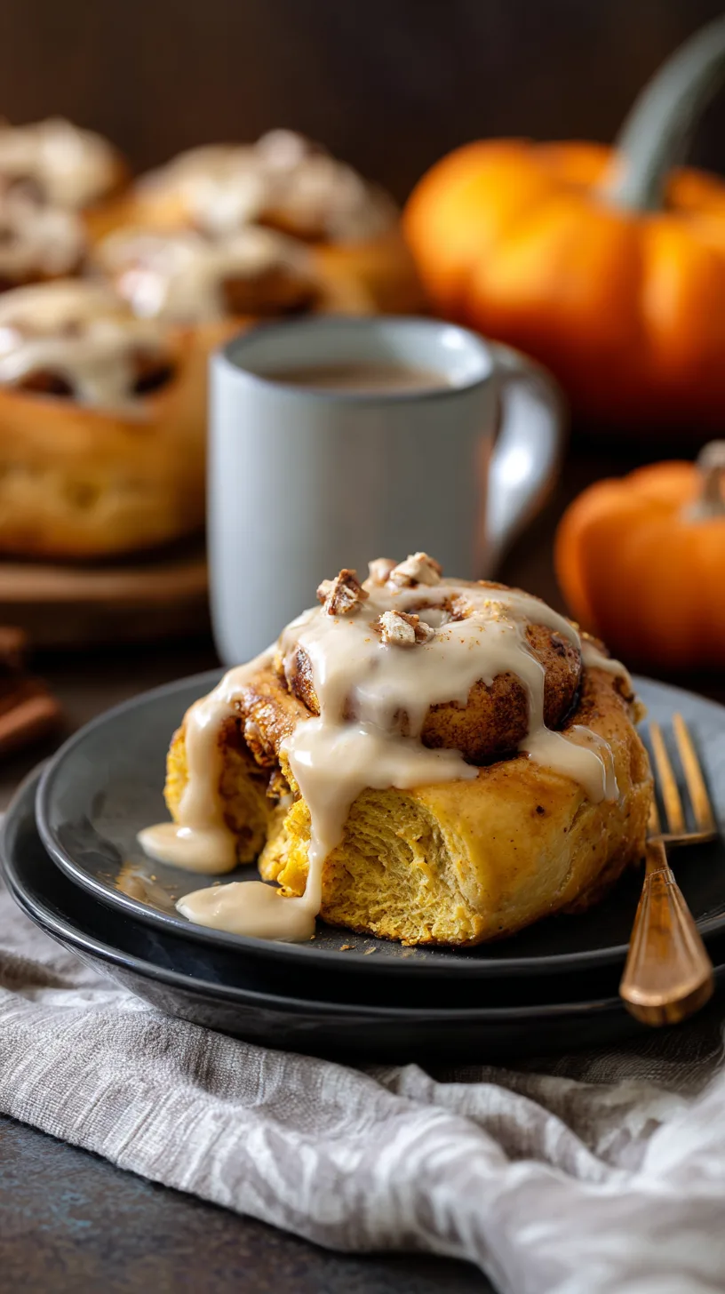 The pumpkin adds significant nutritional value, providing beta-carotene and fiber while reducing the overall fat content by 12% compared to traditional cinnamon rolls.